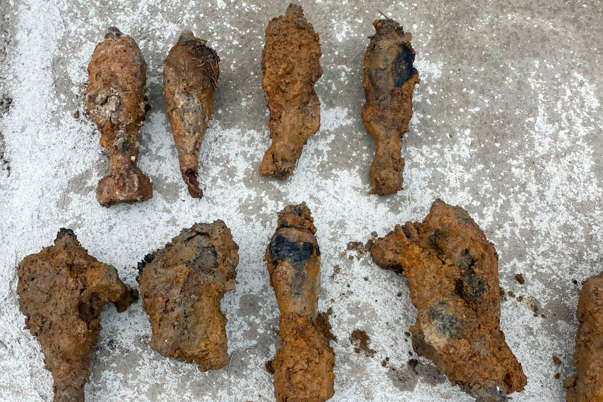 На месте специалисты группы разминирования Росгвардии извлекли из земли 32 минометные мины калибра 82 мм, все периода Великой Отечественной войны и со следами коррозии.