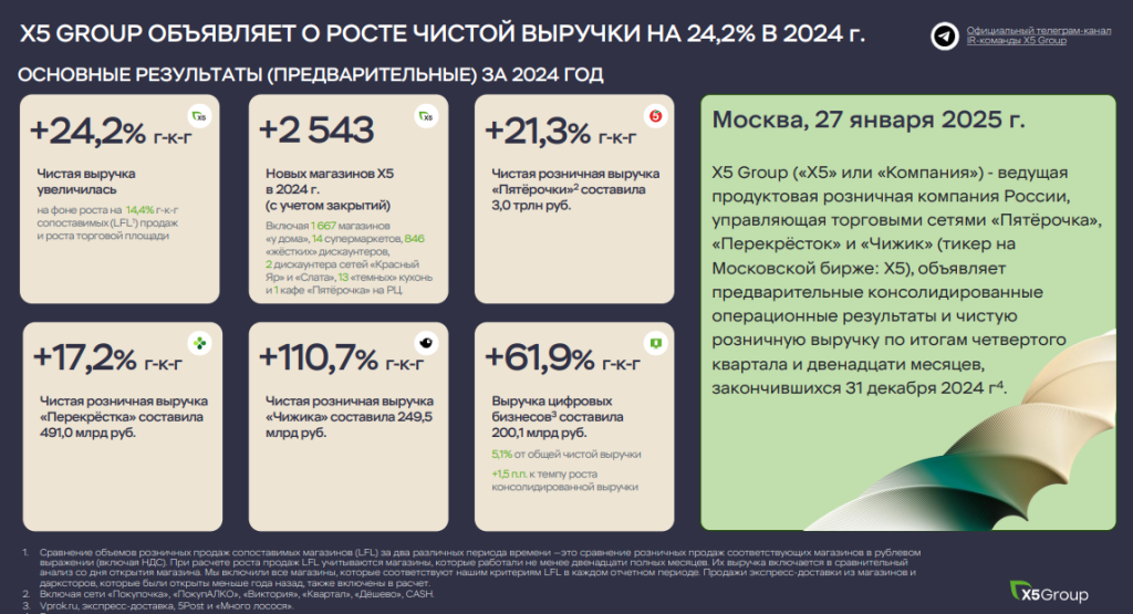 X5 Group объявляет о росте чистой выручки на 24,2% в 2024 году