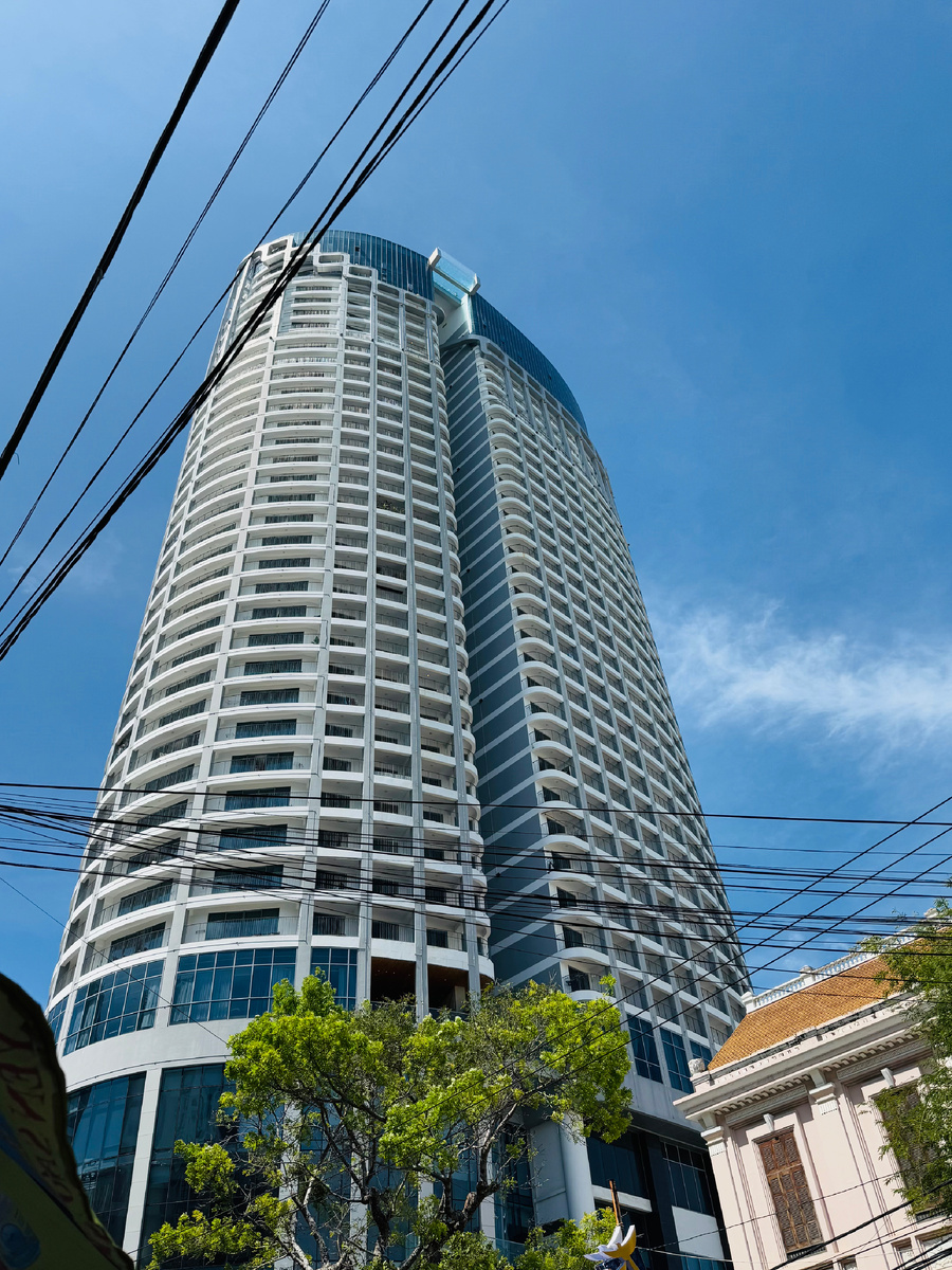 С пляжа Нячанга, где стоит знаменитый маяк Лотос, можно заметить высотное здание со стеклянным бассейном на крыше.