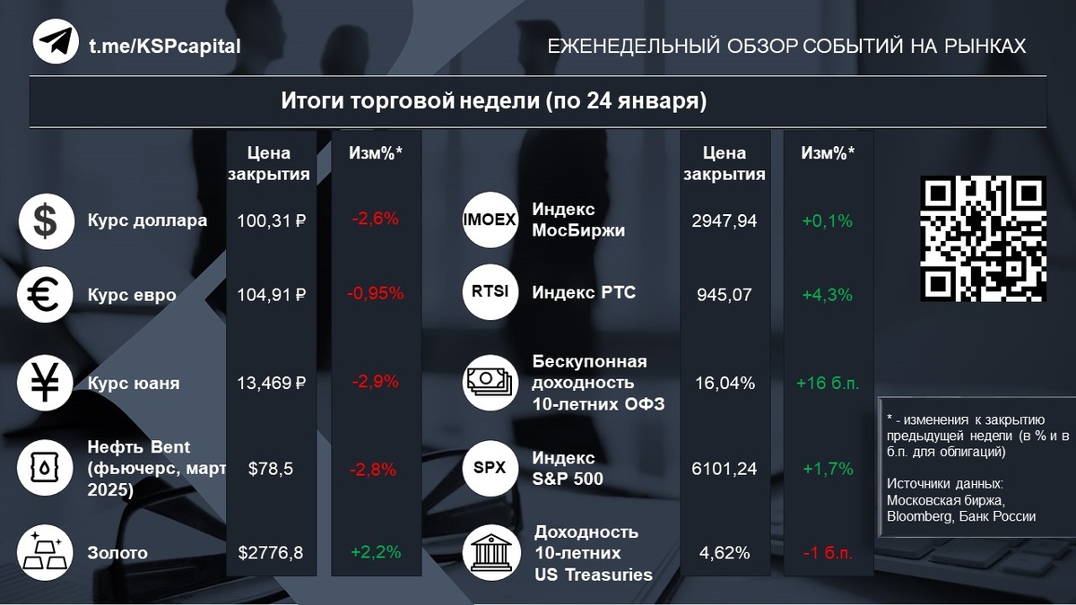 🇺🇸 В США в понедельник биржи не работали в связи с празднованием Дня Мартина Лютера Кинга. Также в этот день состоялась инаугурация 47-го президента США Дональда Трампа.