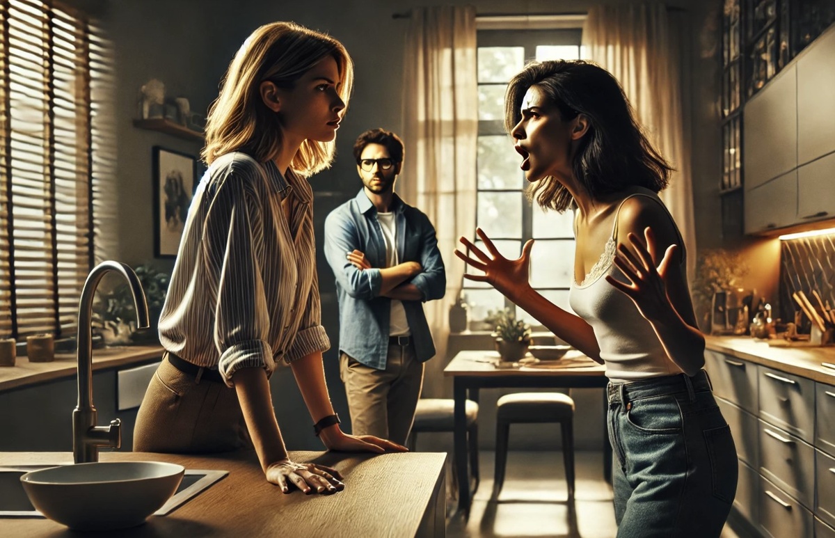На следующий день Света пришла домой с работы раньше обычного. В квартире было тихо, но странная, напряженная тишина заставила ее насторожиться. Она заглянула в комнату Ани и услышала приглушенные голоса из гостиной. Подойдя ближе, Света застала их сидящими слишком близко друг к другу на диване.