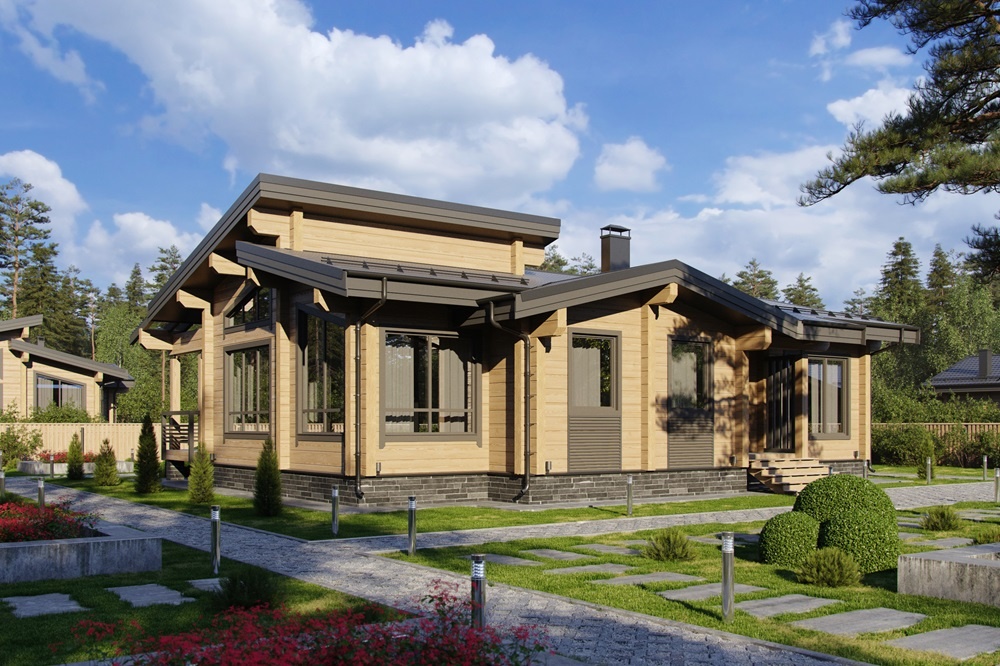 Одноэтажный дом общей площадью 161,12 м2 и стоимостью от 3 117 880 рублей. От нашего подрядчика ПСК ДревПроектСтрой Ссылка на проект: https://lesstroy.net/user/8559/project/81638/
