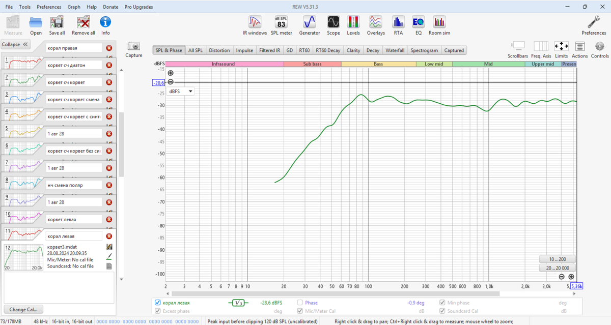 После восстановления корпусов, динамиков и замены купола ВЧ динамика пришла идея оценить результат с точки зрения физики процесса. Одним из главных показателей для оценки работы акустики является АЧХ(амплитудно-частотная характеристика), которая в идеале должна представлять из себя прямую горизонтальную линию, то есть во всем спектре воспроизводимых частот уровень должен быть одинаков, вот её то и попробую измерить. Подобные измерения делаю впервые. Для измерений понадобится аудиокарта и микрофон. Замеры можно делать через приложения для ПК REW. В идеале конечно нужна безэховая комната. Хороший товарищ и вдохновитель всего этого аудиобезумия, который подарил мне тот самый японский усилитель Pioneer, дал для измерений свое студийное оборудование: аудиокарту Focusrite Clarett 8 и микрофон AKG. После настройки звуковухи все готово к измерениям. И как раз к стати он привозит на небольшой ремонт акустику Coral X7, ну теперь точно будет с чем сравнить мои Корветы! Что им