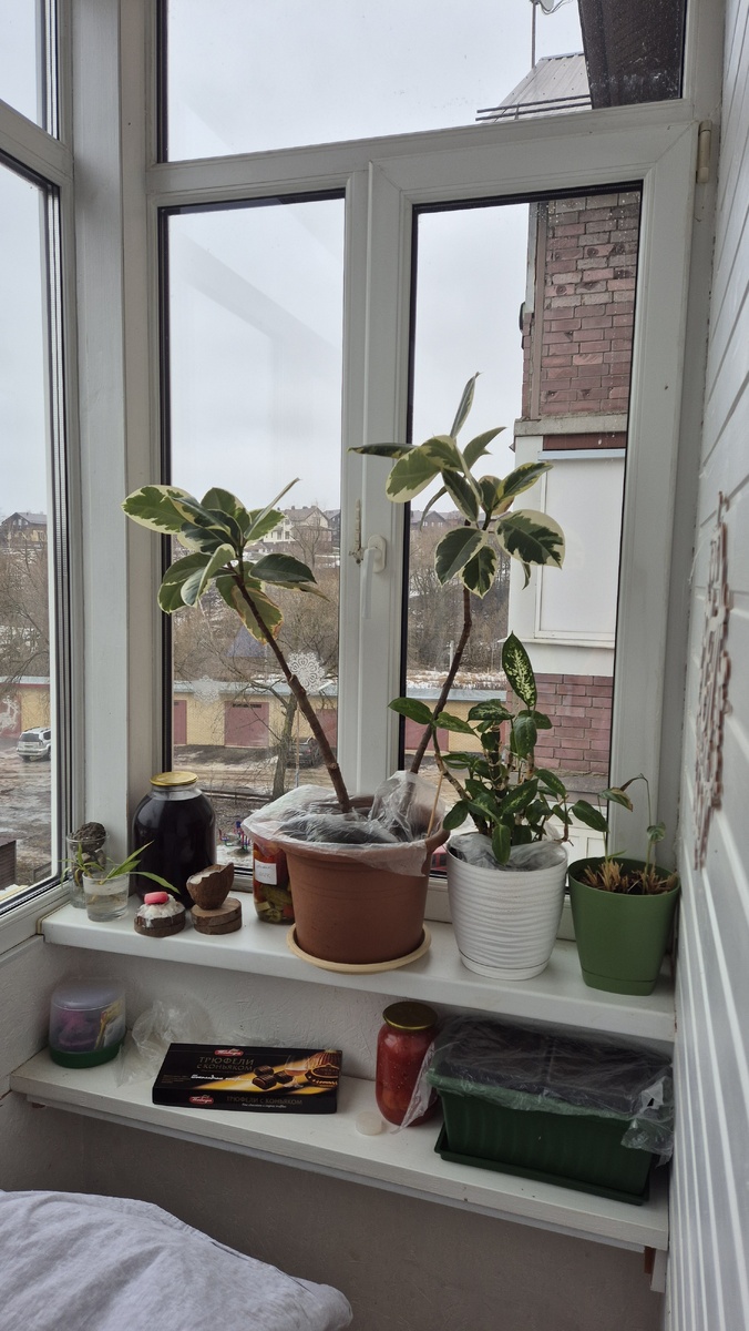 Когда-нибудь это должно было случиться. Точнее не так. Сами растения мне нравятся. Где бы я ни была, везде взгляд найдёт растюхи. Мне нравится, когда их много. Когда они хорошо растут, пышные, живые, здоровые. Вы же понимаете о чём я? Но вот уход... за ними же нужен постоянный уход... Это я сегодня решила немного в порядок привести часть горшков, которые стоят на балконе. Тут не холодно, как в квартире. Но состояние растений ужасное... Сносила их в тёплый душ. Земля была слишком сухая, листья в пыли.. Конечно, о какой красоте может быть речь... Теперь это выглядит так, чуть повеселее. Но мне не очень. Даже стыдно показывать в таком состоянии фикус. Мне кажется, он вообще ухода особо не требует.. у всех и везде и так хорошо растут... Но вот у меня что-то случилось! Думаю, что это отражение моего халатного отношения сейчас к уходу растений. Может зима так сказывается, не знаю.. но вот такое чистосердечное признание) А когда я смотрю на дохлые растения, то вообще все желание пропадает цв