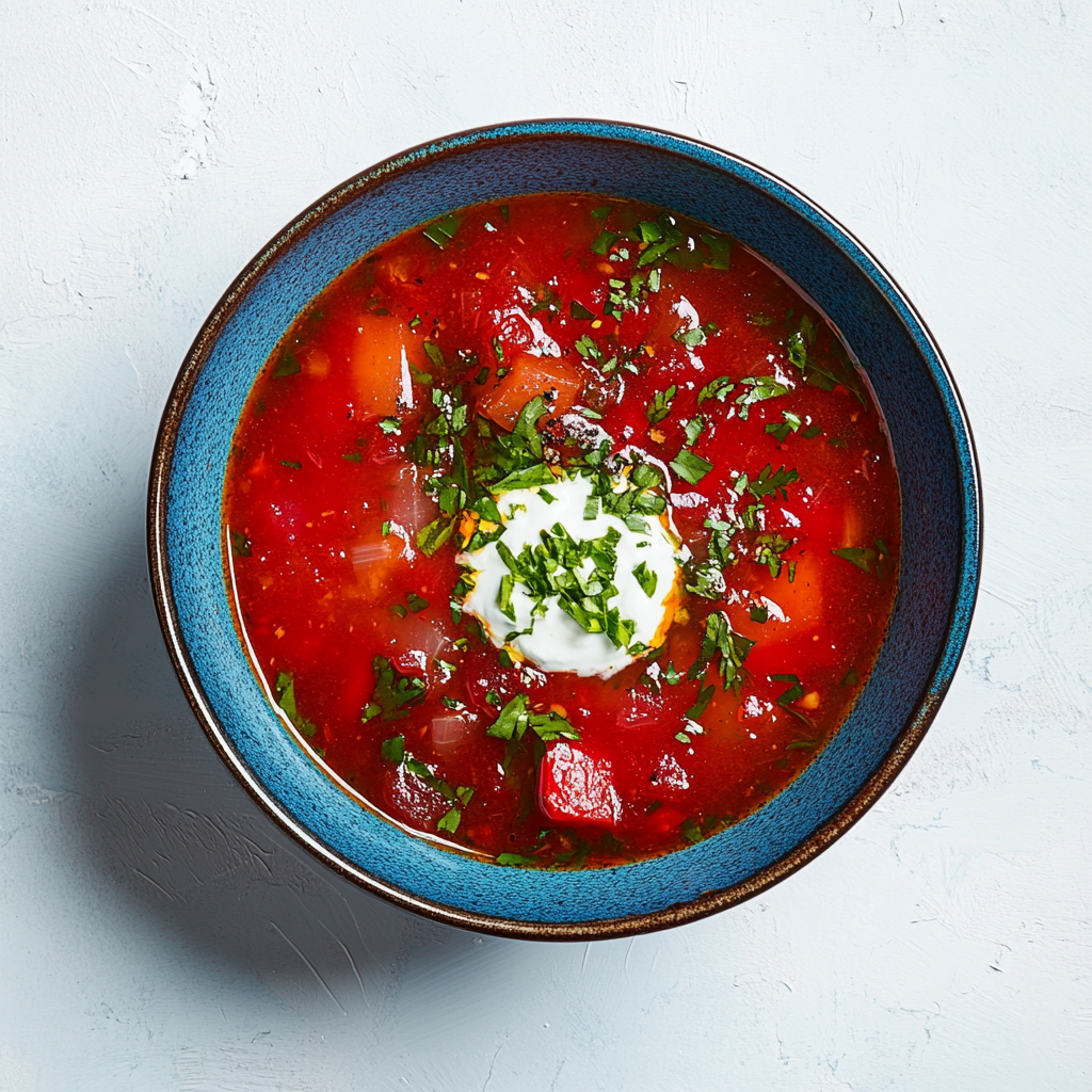 - Подача: Подавайте борщ горячим, посыпав свежей зеленью. Можно добавить сметану по желанию.