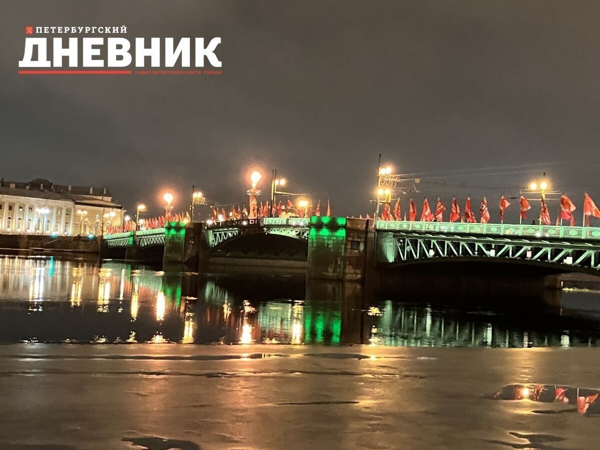 Факелы Ростральных колонн в центре Петербурга зажгли в понедельник, 27 января, в честь 81-й годовщины полного освобождения Ленинграда от блокады. Гореть факелы будут до 22:00. Факелы на Ростральных колоннах также были зажжены с 10:00 о 12:00. В честь 81-й годовщины освобождения Ленинграда от блокады Дворцовый, Троицкий мосты, а также мост Бетанкура получили подсветку в цветах блокадной ленты. Оливковый и зеленый оттенки будут украшать переправы до 28 января. Ранее сообщалось, что в Петербурге телебашня окрасилась в цвета ленты Ленинградской победы.