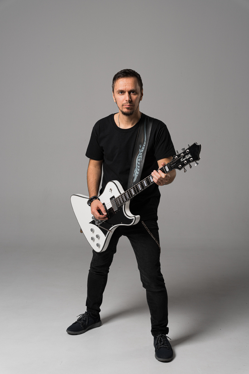 Павел, искреннее спасибо тебе за этот замечательный вопрос! Я всегда с теплотой вспоминаю это далекое время, когда и как все начиналось. Мое знакомство с музыкой началось примерно с 1995-ого года, когда я стал понимать, что меня заинтересовало прослушивание песен ИВАНУШКИ INTERNATIONAL, дальше я полюбил песни Виктора Цоя, СЕКТОР ГАЗА, потом начал «утяжеляться» музыкой SCORPIONS, ЧЕРНЫЙ КОФЕ. А вот летом 95 или 96 года приехал к своим родственникам в Крым на каникулы и мой двоюродный брат Сергей включил мне пару кассет DEF LEPPARD, THE OFFSPRING, METALLICA, IRON MAIDEN, AC\DC и MANOWAR. С первого раза мне такой набор музыкальной информации не понравился. Но Сергей решил развивать меня физически, мы с ним занимались подтягиванием на турнике, отжиманием, штангой, гантелями. И он включал всю эту тяжелую рок-музыку на наших тренировках. Постепенно я понял, что это очень весело и стал с удовольствием слушать эти кассеты. А еще заметил, что если включить по телевизору гонки «Формула 1», убавить звук, а рядом на магнитофоне врубить на всю катушку эти рок-песни, то гонки смотрятся в сто раз веселее! Помню, как подкопил немного деньжат и помчался в ларек покупать свою первую метал-кассету MANOWAR – Hell On Wheels (концертный альбом). Примерно так все и началось! Потом я вернулся в Минск с каникул и тут же с друзьями мы собрали свою первую группу DIN. Отец купил мне маленькую акустическую гитару и этого мне было достаточно, чтобы уже вскоре дать свой первый концерт в холле военного общежития. Мы написали несколько своих песен, у нас была эта моя гитара, простенький детский синтезатор и хороший вокалист Сергей, который пел уж точно лучше, чем я. И уж только потом я начал ходить на гитарный кружок и брать уроки гитары. Учил аккорды, табулатуры, тратил на это все свое свободное время. Записался в нотную библиотеку, выписывал от руки классические произведения Баха, Бетховена, Паганини. Покупал книги-табулатуры всех альбомов METALLICA. Это было чудеснейшее и незабываемое время, когда еще не существовало интернета и все приходилось находить самому, прилагая усилия. Я даже вел письменную переписку с опытными ребятами-гитаристами с других городов Беларуси, и они высылали мне табулатуры песен, которые я просил. Ходил в военную часть к знакомым солдатам, которые очень круто играли на гитарах. Помню, как мы с ними в курилке в 4 или 5 гитар исполнили METALLICA “Nothing Else Matters” и тогда я подумал, как же круто было бы сделать свою собственную профессиональную рок-группу. Один солдат обмолвился, что дома на гражданке у него есть своя рок-группа с настоящими барабанами, басом и электро-гитарами. С тех пор я буквально боготворил этого парня, и мы долго общались о музыке. Потом отец одолжил в военном Доме Культуры первую для меня электро-гитару УРАЛ, а чуть позже ФОРМАНТУ. Я включал их в какой-то радио-приемник, все ручки выкручивал на максимум и это давало, как мне казалось, тот самый «хэви-метал» звук! Таким образом, постоянно практикуясь (по 4-5 часов в день) к 14-ти годам я стал лучшим гитаристом среди своих пацанов. Насочинял множество песен в стиле Виктора Цоя, а потом и достаточно сложных метал-композиций с партиями для двух электро-гитар. К счастью, все эти записи остались у меня, как-то раз мой друг смог их оцифровать с кассет на компьютер. Сейчас, конечно, они звучат весело и нелепо, но для того времени это было очень круто! А потом, когда 