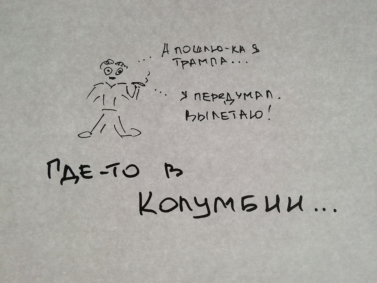 Новый президент Америки без предварительных раскачиваний принялся за дело. Пособирали депортированных колумбийских мигрантов, загрузили в два самолёта и, помахав на прощание платочком, отправили в Колумбию. Но президент Колумбии Густаво Петро (под песенку "а нам всё равно, мы косим трын - траву") запретил принимать этих преступников, зачем они тут нужны. У Дональда от такой наглости задергался глаз. Он схватил б̶и̶т̶у̶ ручку и давай строчить указы. В момент ввёл 25% пошлины на товары из Колумбии. Намекнул, что счётчик мотает и через неделю пошлины будут 50%. Запретил въезд колумбийским чиновникам, в догонку визовые санкции на всех членов партии, членов семей и сторонников колумбийского правительства... и их потомков... вместе с котами... Усиление таможенных проверок... Финансовые санкции... В общем, Трамп даже не успел всё дописать, за депортируемыми колумбийцами уже летел президентский самолёт, лично заправленный Густаво Петро, чтобы с комфортом доставить их домой. Не получилось