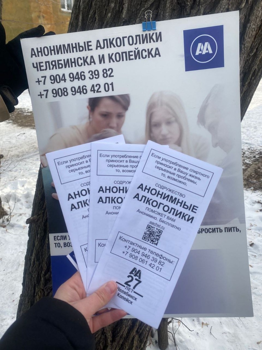 25 января 2025 года, члены АА Челябинска и Копейска в очередной раз присутствовали на мероприятии по раздаче пищи нуждающимся, организованной фондом «БлагоДарю». Сообщество плодотворно взаимодействует с фондом уже около двух лет. На время раздачи пищи вывесили стенд, раздали визитки и буклеты тем, кто заинтересовался, общались и отвечали на вопросы.