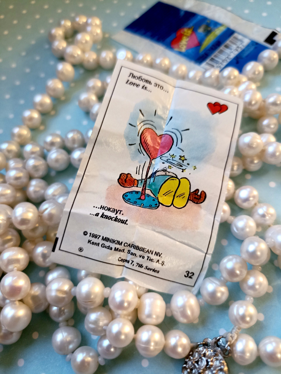 Думаю, Вы знаете, что в основе этих рисунков - лежит история любви художницы-мультипликатора и её мужа. И в реальности - это была совсем непростая история. История рождения детей, болезни, смерти, рождения ещё одного ребёнка... И именно ей, этой любви - мы радуемся, когда открываем вкладыш с рисунком. Именно к ней мы прикасаемся. Итак, сегодня: