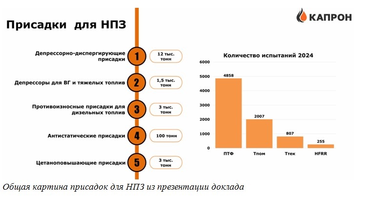 Несмотря на сложившуюся ситуацию, отрасль успешно адаптировалась к санкциям 2022 года. В настоящее время в России наладили производство большинства видов присадок для НПЗ, включая депрессорно-диспергирующие, цетаноповышающие и противоизносные.