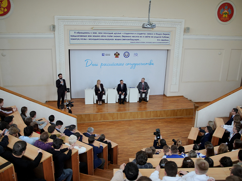 «Прежде всего, хочу поздравить вас с предстоящим Днем студента. В молодые годы важно заложить фундамент для своего будущего, определить перспективы, поставить цели. Сегодня конкуренция на рынке труда очень высока, но увидев разработки и инновации студентов и ученых наших вузов, мы понимаем, что все вы очень талантливые. Наша задача — создать условия для максимальной реализации вашего потенциала в родном крае. Нам нужны квалифицированные специалисты, способные внедрять передовые технологии в промышленность, сельское хозяйство, медицину, строительство. Это позволит Краснодарскому краю развиваться и оставаться конкурентоспособным», — сказал Вениамин Кондратьев.