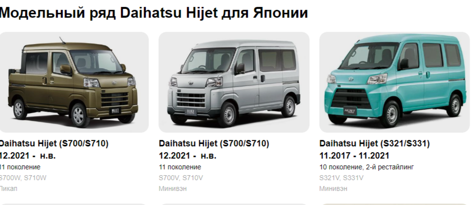 Есть у Hijet практически полностью аналогичные модели других брендов, наиболее популярная Suzuki Every. У нас на канале есть видеообзор, где известный блогер промерял размеры салона до сантиметра. (Кликните на это абзац, чтобы посмотреть ролик).