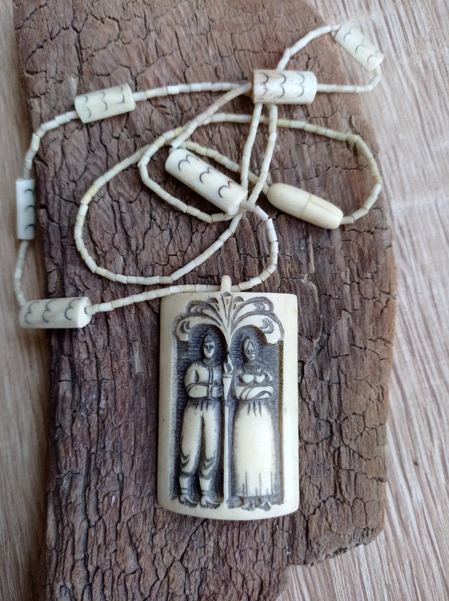 Доброго дня! Странно устроен коллекционер: только решишь для себя, что все, нужно ограничить покупки, приобретать в коллекцию украшения исключительно в тему выбранных направлений... И вдруг попадается нечто особенное, цепляющее за душу. И ты уже не можешь выпустить эту вещицу из рук. А может это я такая, не стойкая? Мимо этой костяной подвески я и не смогла пройти и нарушила самой себе данное слово: лишнего не покупать. Решила же для себя - костяные украшения не собираю, есть в коллекции несколько украшений разных периодов и стилей и хватит. Но разве можно отказаться от такой красоты? В комментариях под одной из статей увидела брошечку и посетовала, что раньше не встречала с таким сюжетом. Сохранила себе в закладки, решила - буду искать, а вдруг да попадется. И в первую же поездку на блошиный рынок - нашла её. Брошка дополнила серию украшений с подобным дизайном: пластик и фигурная рамка с сюжетом сверху. Очередное пополнение в коллекцию эмалей - серьги, именник ЛЮ2М. Здесь бе