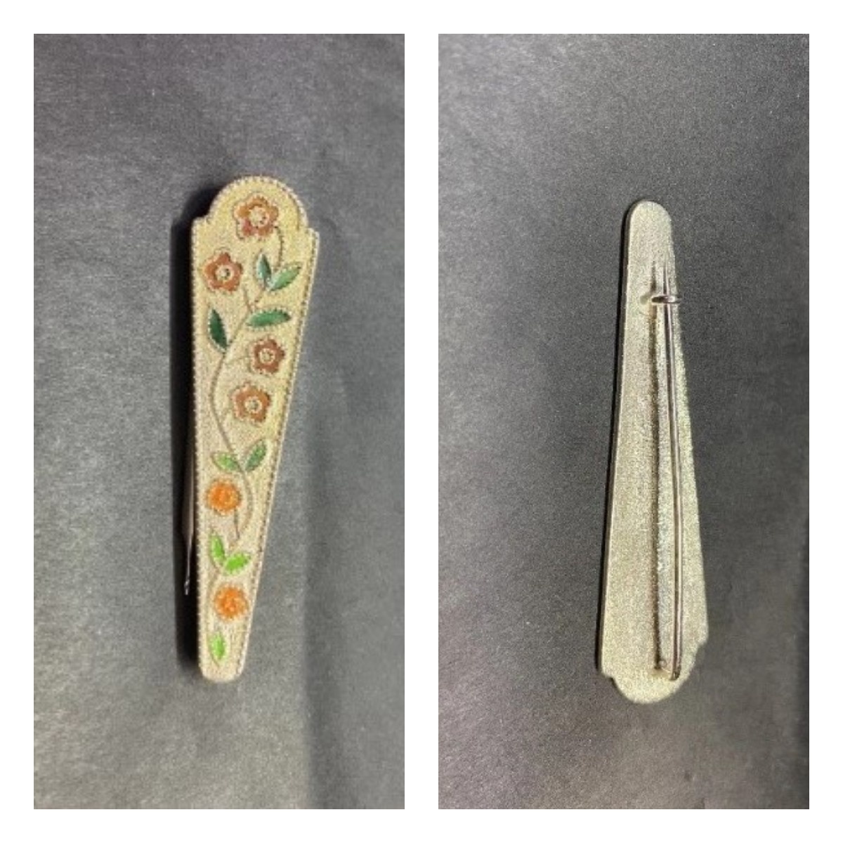 Эпизод 1 Какой завод в СССР изготавливал подобные броши? Для начала - никаких клейм на броши нет. Да, в настоящее время это брошь, хотя изначально была изготовлена...чайная ложка. Сразу вспоминается высказывание О.Бендера: "Оригинальная конструкция... Небольшое приспособление — и получилась прелестная колхозная сноповязалка." - роман "Золотой телёнок" (Ильф и Петров). Вот пробирное клеймо и именник этих ложек. Вот так эти ложки выглядели. Данный комплект был изготовлен на Ленинградском заводе "Русские самоцветы" в 1971 году. Ложки этого дизайна можно встретить с эмалью самого разного цвета. Брошь получилась без маркировки по причине того, что клейма стояли на другой части ложки. Эпизод 2 Могут ли марказиты быть поддельными? Вот брошь с настоящими марказитами. Часть марказитов изменила цвет, он может быть желтоватым или даже коричневым. Для старой броши это норма. Производство украшений с марказитами довольно трудоемко, ведь нужно огранить и установить большое количество камней, которые