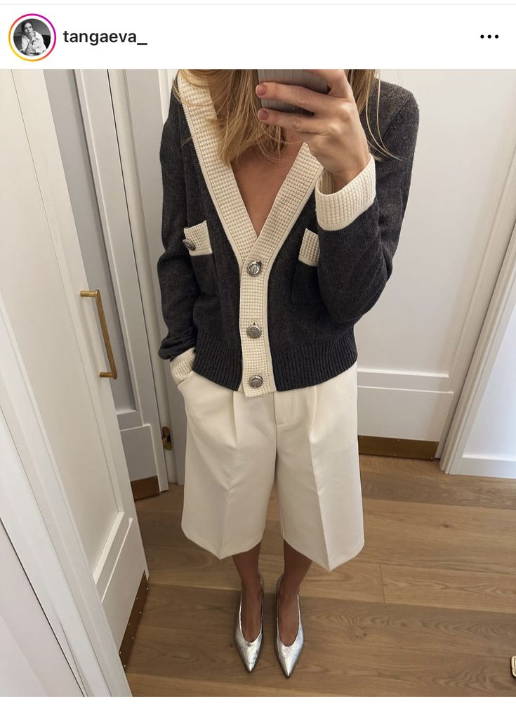 Грустные факт: многие до сих пор уверены, что шорты-бермуды — это находка исключительно для теплых дней. На самом деле этот они могут стать вашим верным и универсальным спутником и в холодный период! Но сначала пару слов о том, зачем и почему они должны оказаться в вашем гардеробе! Стилизация бермуд для летнего выхода практически не имеет ограничений. Они прекрасно работают с различными топами, легкими футболками, стильными блузками и рубашками. Для повседневного образа на каждый день можно сочетать бермуды с сандалиями и футболкой. Получается непринужденный, но вполне аккуратный и стильный вид. А если заменить сандалии на мюли или балетки, футболку — на рубашку или вечерний топ, и добавить аксессуары, то можно получить элегантный летний образ. В таком можно смело идти и на свидания, и на встречу с подружками в ресторане, и на вечеринку, и на выставку современного искусства… Вариантов — масса! Ровно так же, как вы носили бы в это время года юбку-карандаш — то есть с колготками и красив