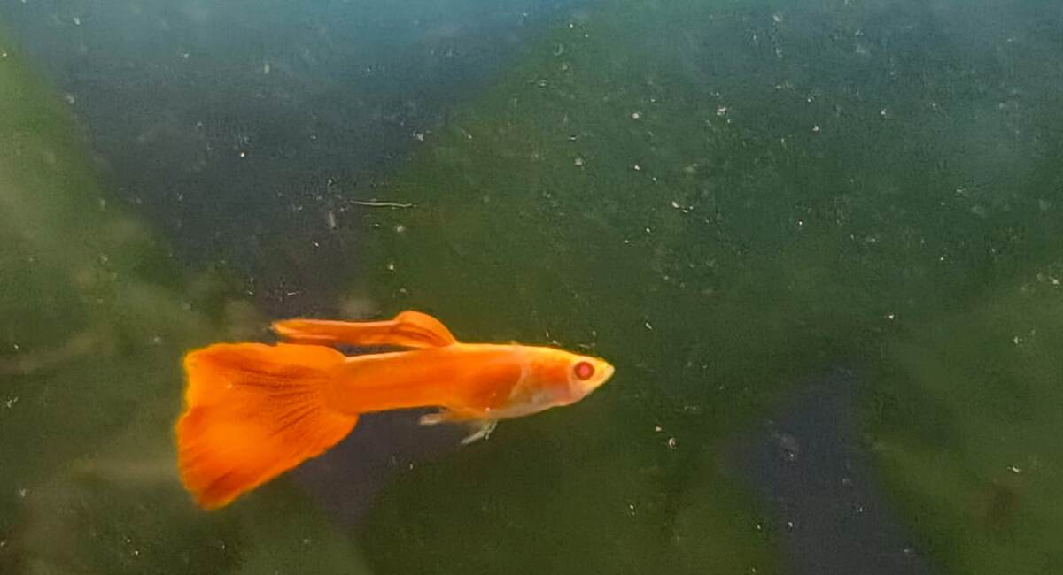 и бесчеловечного шантажа я заставила соседа помочь мне поменять воду во втором большом аквариуме. А то там уже было натуральное Гуантанамо. Рыб было почти не видно, вода черная. Теперь вот так, но еще вода не отстоялась, есть немножко взвеси. Есть вот такие красные красивые. И самцы и самки. У меня есть маленький аквариум запасной, туда можно потом самок отсаживать, чтоб мальков не пожрали. Я один раз купила двух беременных самок, они 80 мальков родили. Очень были красивые. Погибли от холода два года тому назад. Пришлось начинать с нуля мою аквариумистику. Вот этот не очень получился, он желто-золотой с отливом и хвост у него оранжевый. Самок таких нет, погибли. Только два самца. Я жду, когда привезут. Изумительно красивые. Жаль, на телефон не получилось заснять хорошо. Еще есть ковровые с черным тельцем. Плохо видно, но они слева от красных Есть пять золотых рыбок-это у нас самые распространенные аквариумные рыбы Все пять у меня разной окраски. В горшочке сидит сомик. Как называется
