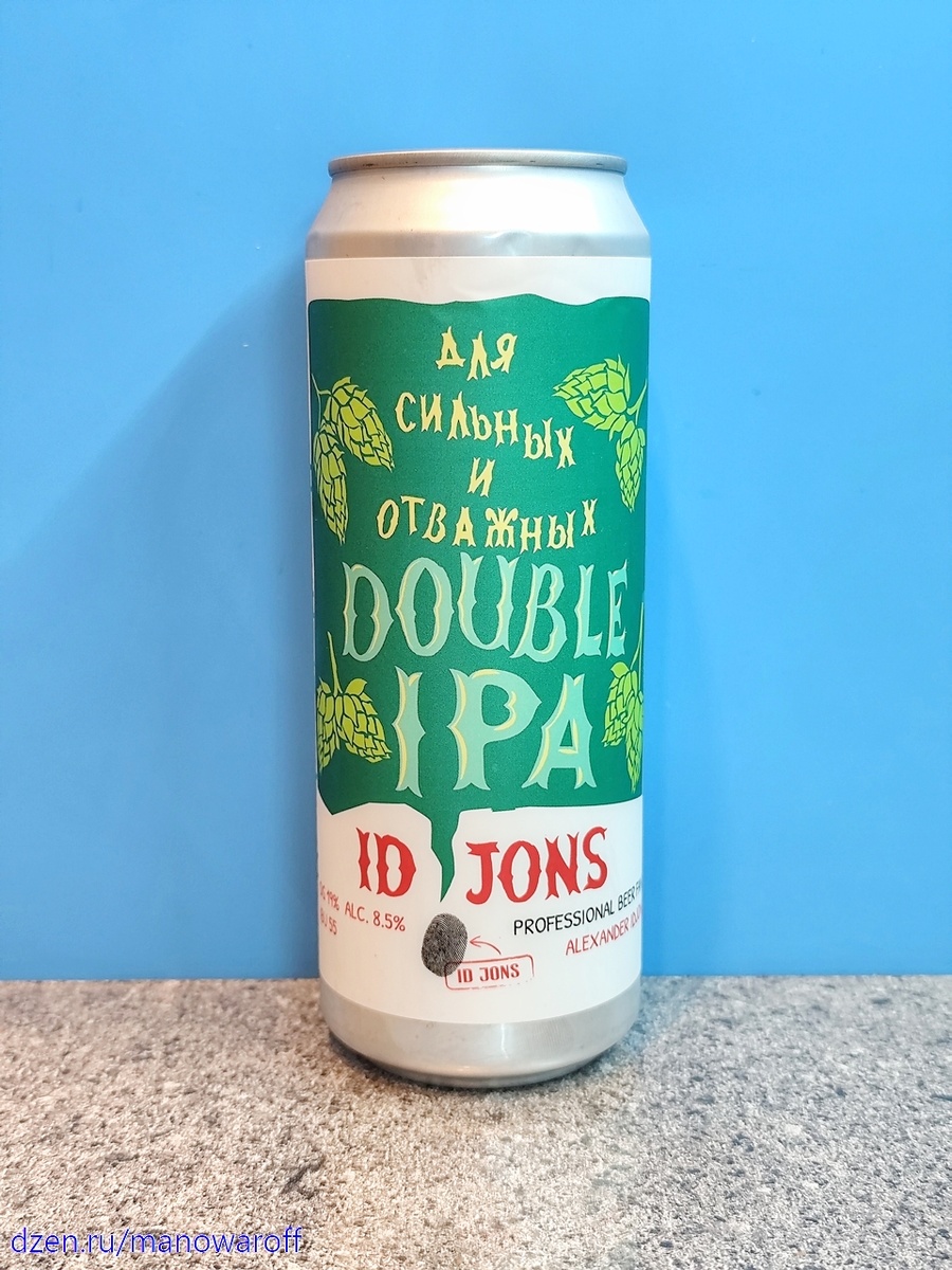 А называется этот пивандрий ID Jons DIPA. Если верить "тапку", то дебют пива состоялся в марте прошлого года. У меня баночка посвежее - ноябрьская. А вскрыл я ее примерно через два с половиной месяца. Срок годности - 8 месяцев при комнатной температуре. Глянем описание пенного: Пиво для сильных и отважных! Хмелевая бомба для ценителей. Двойная доза хмеля дарит яркий аромат и насыщенный вкус, а 8,5% алкоголя согревает. В аромате тропичеcкие фрукты и хвойные тона. Насыщенный солодовый вкус. Таки да, думаю, что ежели засосать несколько баночек пива с такой крепостью, то придут они - слабоумие и отвага. И сила тоже. Но не обязательно. Проверить не получится - у меня всего одна баночка. ТТХ: Пиво мутноватое, полупрозрачное. Пены очень много, стойкость выше средней. Аромат не особо яркий, цитрусово-тропический, с хвойными нотками. Во вкусе сладкий солод с фруктами, легкие цитрусовые оттенки и заметная смолянистая горечь, остающаяся в послевкусии. Алкоголь скрыт. Пиво плотное, пьется нормаль