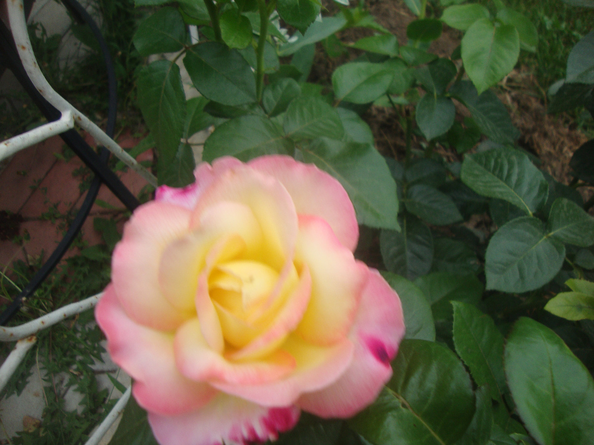 Как и обещала, продолжаю рассказывать о своих розах. Сегодня решила посвятить своей любимице целую статью. Эту красотку редко хвалят, а я не представля свой сад без этой розы! Как я уже не раз говорила, что розы покупались по принципу: расхвалил продавец. Названий мы не знали, критерий один-красивая! Так и росли безымянные. Но эту мы купили в коробке и посадили весной вместе с остальными. Было это давно, с интернетом еще не дружила. Все розочки тронулись в рост, а эта "мадам" как сидела , покрытая зеленым воском, так и осталась. Соседки ее набрали зеленую масу и зацвели, а эта, сидит без признаков жизни. Но, мы народ упертый, продолжали ее поливать и ублажать, как и других ее подруг. Чихать она хотела на нашу заботу, лето двигалось к концу, а ей хоть бы хны! Роза , явно не хотела жить. Мы уже смирились, что не будет у нас этой розы, придется осенью покупать новую и перестали обращать на нее внимание. Каково же было наше удивление, когда заметили на ее веточках зеленые побеги, да так