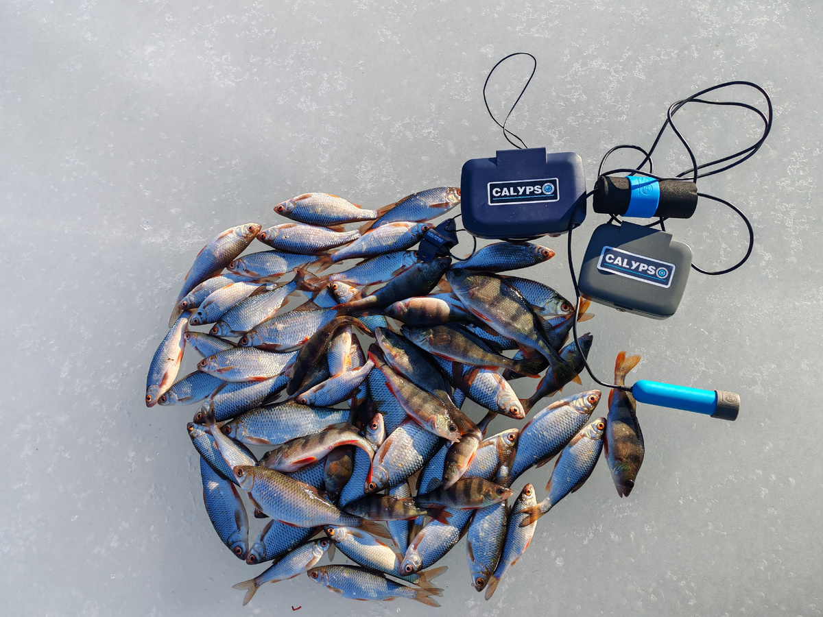 Зимой эхолот Calypso становится палочкой-выручалочкой для рыболова. Когда вокруг только лед и нет никаких видимых признаков рыбы, эхолот помогает понять, что происходит под водой. Достаточно опустить датчик в лунку, и вы сразу получите массу информации.