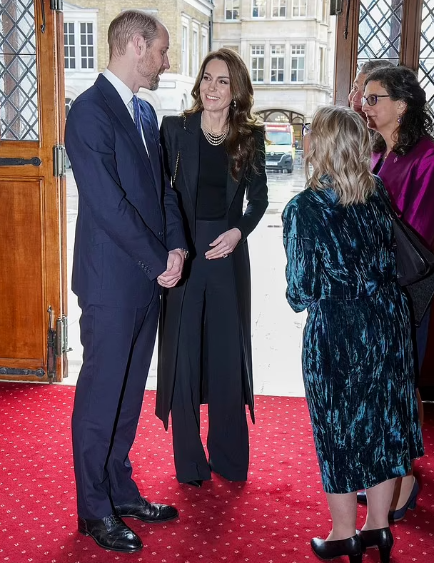 Принц Уильям и принцесса Кэтрин посетили поминальную службу по жертвам Холокоста в Гилдхолле в Лондоне. Уильям прочитал стихотворение и зажёг свечу вместе с молодыми представителями Фонда памяти жертв Холокоста и других партнёрских организаций. Перед сегодняшней церемонией Уильям и Кейт встретились с жертвами Холокоста, чтобы услышать их личные истории. Кейт, одетая во всё чёрное и с жемчужным ожерельем из пяти нитей, и Уильям, одетый в тёмно-синий костюм и синий галстук, назвали это «большой честью» для себя — встретиться с группой выживших, которые рассказали ей свои душераздирающие истории. Зажжение свечей: И принц, и принцесса обсуждали своё желание рассказать детям о Холокосте. Уильям сказал: «Джордж уже в том возрасте, когда он начинает понимать некоторые вещи. Поэтому с ним интересно говорить о том, что произошло». Извинившись за то, что они не могут долго разговаривать, он сказал: «За этим столом много историй, нам нужно услышать их все». Здесь Кейт пожимает руку миссис Бернс