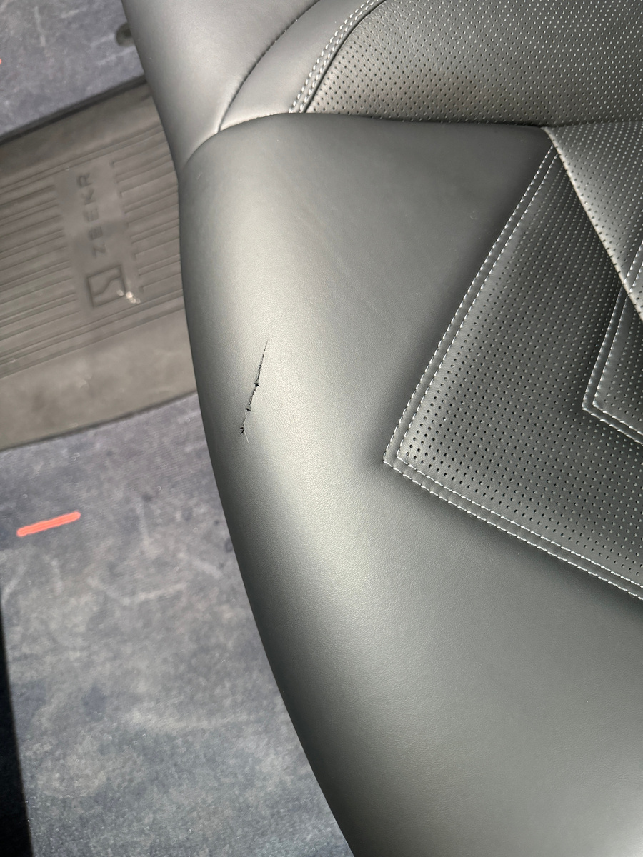Реставрация заднего сидения Zeekr 001. Материал экокожа. Он как довольно стойкий к повреждениям, так и сложен в ремонте, но наш мастер в очередной раз доказала что она лучшая и справилась со своей работой на отлично!