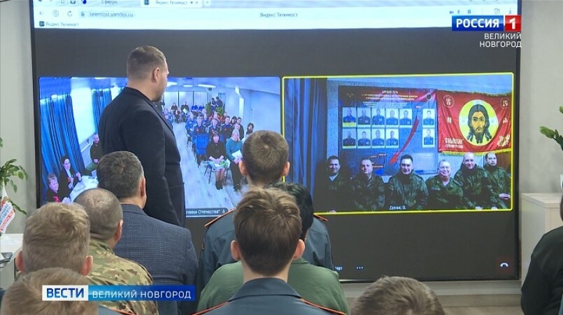 С новгородцами, выполняющими сейчас боевые задачи, пришли поговорить представители мэрии, студенты технологического колледжа и волонтеры объединения «За други своя». Кстати, добровольцам вручили благодарности за их работу, и, пожалуй, главным стали слова признательности за помощь непосредственно от наших ребят, находящихся в зоне проведения СВО. Участников специальной военной операции расспрашивали о бытовых условиях во время службы и необходимой им поддержке, рассказывали, как отметили День освобождения Новгорода от фашистских захватчиков и какие события приурочены к празднованию годовщины снятия блокады Ленинграда. И, конечно, бойцам желали здоровья, с честью выполнить воинский долг, и с победой вернуться домой. Отметим, что этот телемост с новгородцами - участниками СВО стал одним из первых событий в региональной программе объявленного президентом Года защитника Отечества.