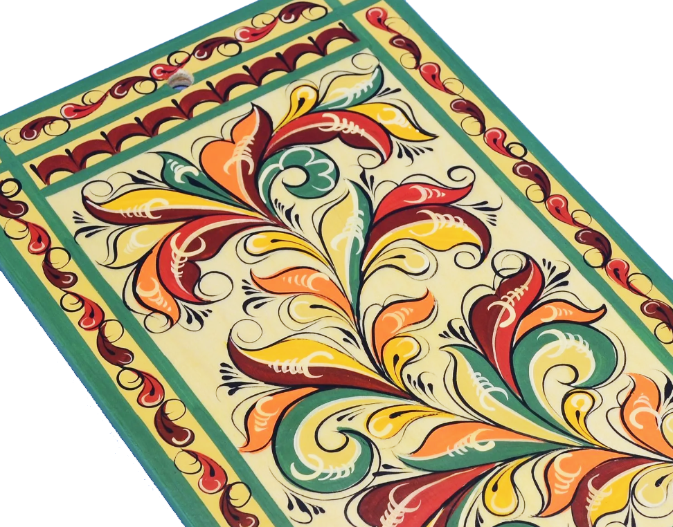 Колорит росписи отличается большим благородством. В орнаменте встречаются: