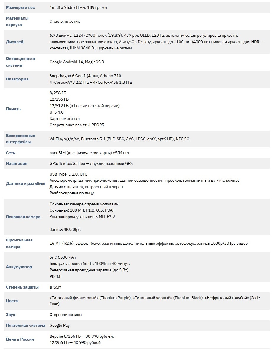 В новых экономических обстоятельствах цена этой модели выглядит адекватной (она равна Honor 200, что дает больше очков старшей модели, которая выгоднее по соотношению цена/качество). Но при этом устройство не обладает тем же набором защитных характеристик. На мой взгляд, их можно рассматривать при выборе и сделать упор на камеры в Honor 200, если вам нужна фотосъемка, а защита устройства отходит на второй план. И ровно наоборот.