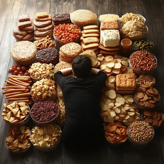 Лет 7 назад я вообще не знал термина «эмоциональное переедание». Считал, что просто ем всякую фигню в стрессовые моменты, да и ладно. Проблемы с поиском работы? Проблемы на новой работе? Выход? Пицца. Желательно большая, желательно на тонком тесте и с горой сыра. Нет сил бороться? Правильно, покупаю ещё пирожные, потому что «ну а чего уж тут, всё равно день пошёл кувырком». Потом, когда туман стресса рассеивался, я оставался наедине с остатками этих пирожных и чувством вины - не самая лучшая компания. Тогда-то впервые и понял, что «стресс → хаотическая еда → самобичевание → ещё больше стресса → снова еда» — цикл замкнутый и выбираться из него не особо просто.