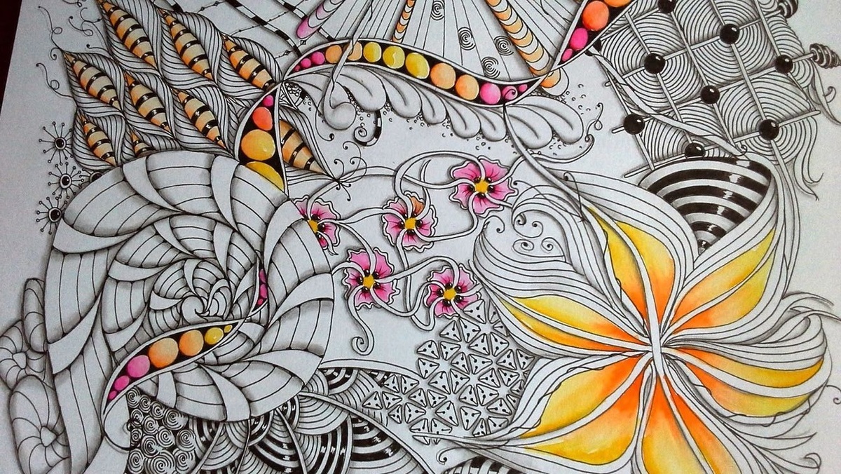 Зентангл и дудлинг — это два популярных метода рисования, которые имеют свои уникальные особенности и цели. Оба подхода связаны с созданием абстрактных узоров и могут использоваться для расслабления. Однако они отличаются по своей философии, технике и конечным результатам. Основная идея зентангла заключается в создании маленьких рисунков, которые состоят из повторяющихся узоров – танглов. Они рисуются в рамках, что придаёт работе структурированный вид. Зентангл акцентирует внимание на процессе рисования. Художник сосредоточен на каждом штрихе и почти не думает о результате. Подобный подход способствует снижению стресса и повышению осознанности. Зентангл чаще всего выполняется черной ручкой на белом фоне, что подчеркивает контраст и детали изображения. Дудлинг представляет собой спонтанный стиль рисования. Он не имеет строгих правил или рамок и может включать в себя любые формы и узоры. Дудлинг часто используется как способ развлечения или отвлечения внимания во время скучных моментов