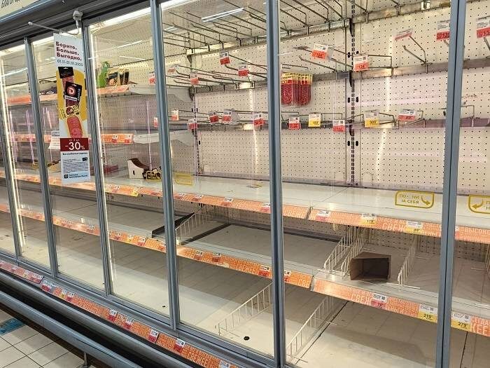 Персонал отсутствие продуктов не объяснял. Жителей Таганрога насторожили пустые полки в гипермаркете «Лента». Как сообщили очевидцы сегодня в «большой «Ленте» отсутствовали мясные продукты, колбасы, масло и другие молочные продукты, йогурты, десерты и торты, сыры, детские молочные и другие продукты. Персонал на вопрос «что случилось?» не отвечал. RO.TODAY связался с техническим работником «Ленты», который пояснил, что это «плановое обслуживание холодильников», и что «ничего страшного не происходит». Собеседник посетовал, что работники гипермаркета могли бы на пустые полки повесить что-то вроде объявления «холодильник на плановом обслуживании», поскольку «в нашем народе силен страх, что надо хватать с полок последнее и запасаться».