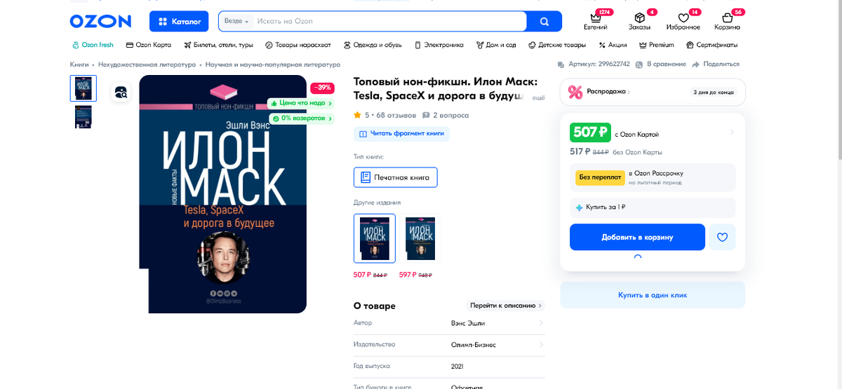 Фигура Илона Маска сейчас на пике. Затмевает даже Трампа. Фигура Илона крайне интересна. Его поведение на инаугурации посмотреть здесь, а тут можно прочитать о том, что Илоном в одной из фантастических книг, звали первого колонизатора Марса... Вот так имя определяет судьбу человека! Я читал эту книгу еще по-моему в 2017 году. Купил книгу, прочитал, выписал умные мысли и отправил книгу в США на завод Тесла на имя Илона Маска с просьбой подписать и вернуть обратно. Туда она дошла :). Обратно не вернулась :). Ну и ладно :) Купил еще раз. Это того стоит плюс хочу чтобы ее начал читать старший сын Ваня. Книга о взлетах и падениях. О безнадежности и выхода из такой ситуации. О силе и о том где ее искать и как. Книгу сейчас можно купить и за 500 рублей, но именно эту крайне НЕ рекомендую! По одной причине: шрифт настолько мелкий, что даже мне с моим идеальным зрением читать крайне неудобно, глаза устают. Смотрите на формат и выбирайте что-то побольше. Тут прям понятно что издательство хот