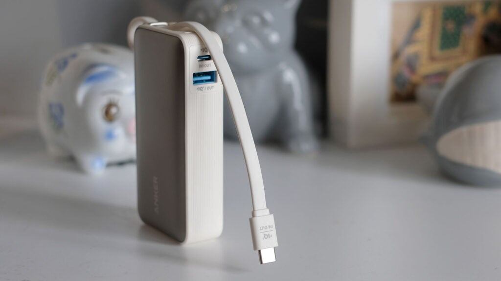 Анкер задумался о том, что на самом деле нужно опытным пользователям от внешнего аккумулятора. Особенностью этого компактного внешнего аккумулятора емкостью 10 000 мАч является встроенный зарядный кабель USB-C. Это означает, что владельцам телефонов с портом зарядки USB-C больше не нужно постоянно держать при себе зарядный кабель. Когда убранный кабель не используется, он служит удобным ремнем для переноски. Также есть порты USB-C и USB-A, поэтому вы можете заряжать более одного устройства одновременно. Максимальная мощность зарядки через USB-C составляет 30 Вт, на USB-A 22,5 Вт. Этого достаточно, чтобы зарядить iPhone 15 на 51 процент за 30 минут, iPad Pro 11 дюймов на 36 процентов и MacBook Air M1 на 21 процент. Это впечатляющие значения для такого компактного павербанка. Мы также впечатлены скоростью, с которой заряжается сам Power Bank мощностью 30 Вт, так как это занимает всего около 1,5 часов. Вы можете подавать энергию нескольким устройствам одновременно, но тогда устройства д