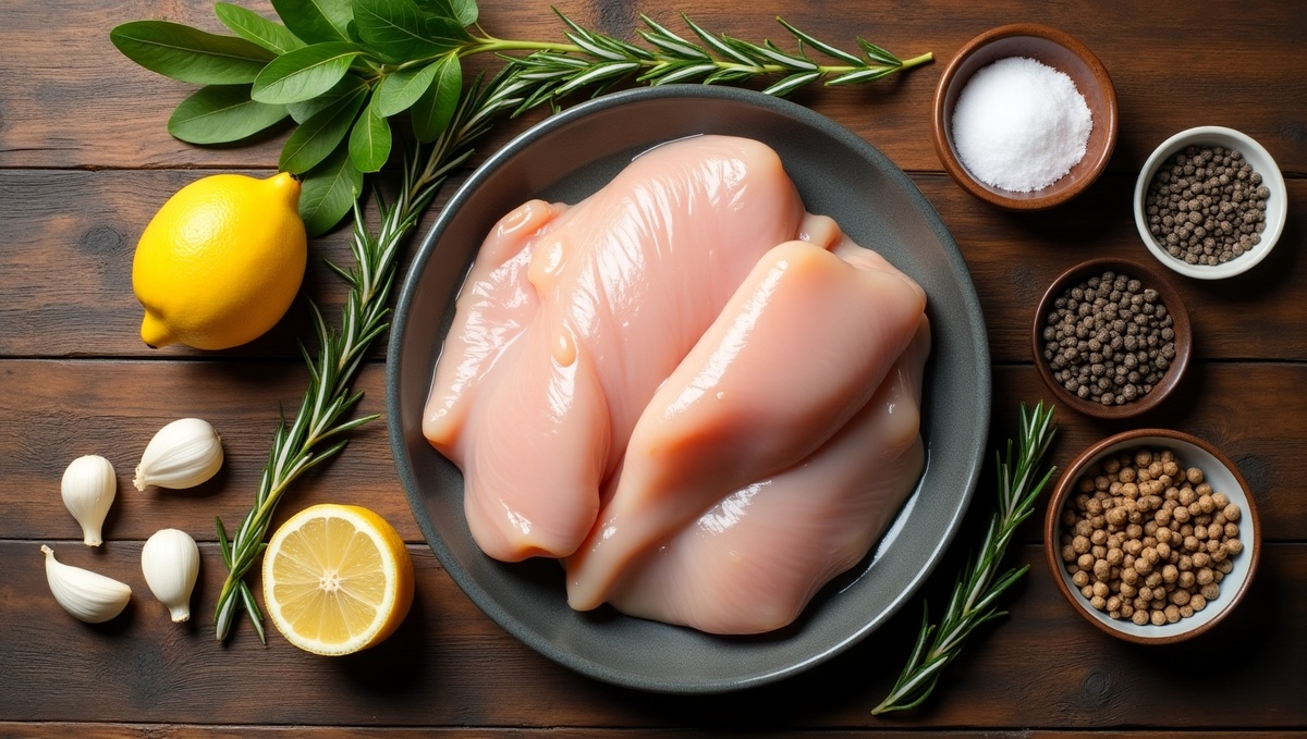 Маринование играет ключевую роль в приготовлении сочной грудки. Маринад не только улучшает вкус, но и делает мясо мягче. Используйте смесь оливкового масла, лимонного сока, чеснока, трав — тимьяна, розмарина и майорана. Мясо должно мариноваться в холодильнике минимум 4 часа, но лучше оставить его на ночь.