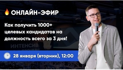 28 января в 12:00 по МСК вас ждет уникальная онлайн-встреча с Александром Черкашовым — экспертом в автоматизации найма, основателем платформы с выручкой 300 000 000+ рублей в 2024 году! Что вы узнаете на встрече? ✅ Готовую модель найма для ЛЮБОЙ должности: получите 1000+ откликов за 3 дня. ✅ Как полностью автоматизировать процесс найма без звонков HR и собеседований. ✅ Как привлекать сильных сотрудников, готовых работать даже без оклада. ✅ Реальные кейсы: Александр поделится примерами найма сотрудников для разных сфер — от юриспруденции до строительства и недвижимости. Почему важно прийти? Февраль — время, когда рынок труда оживает после новогоднего затишья. 🔹 Займите лидерскую позицию и закройте ключевые вакансии раньше конкурентов. 🔹 Узнайте, как сократить рутину на 80% и получить только мотивированных кандидатов. 🔹 Оставьте конкурентов позади, начав действовать уже сейчас. Кто должен быть на встрече? Собственники бизнеса, которые хотят собрать сильную команду. HR-менеджеры, котор
