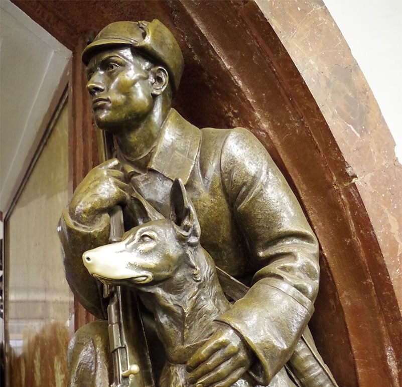 Вот уже несколько недель мы рассказываем вам о моделях и прототипах для статуй, украшающих собой станцию московского метро «Площадь Революции». Мы уже рассказали, с кого ваяли студентку с книгой и революционного матроса с наганом, а также был ли прототипом шахтера знаменитый Стаханов. И, постепенно завершая рассказ, мы не могли обойти стороной самую известную и самую обсуждаемую статую на этой станции – статую пограничника с собакой.