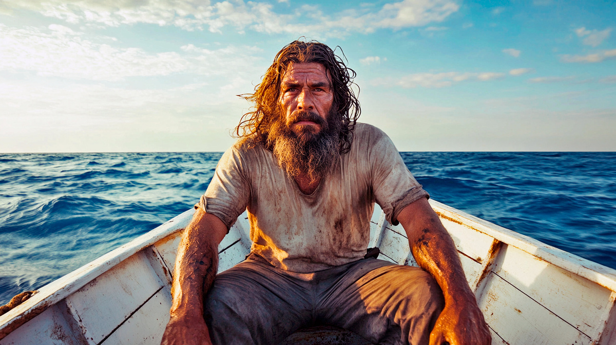 Шторм успокоился, но беды только начались. Дни превращались в недели, а земля исчезла за горизонтом. Мужчины слизывали росу с лодки и ели всё, что могли поймать: медуз, рыбу, морских птиц. Они также использовали кровь морских черепах. Хосе проявил невероятное терпение и изобретательность, поддерживая товарища морально и физически.