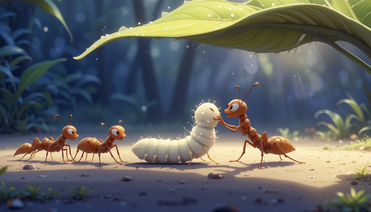 В муравейнике, который стоял под старым раскидистым дубом, жил муравей по имени Филя. И был он, как ты, наверное, уже догадался, муравьём совершенно особенным. Нет, он не умел летать или, скажем, разговаривать с птицами — Филя был ужасно ленив. Пока все его сородичи с рассветом бежали на работу, собирая зёрнышки и травинки, Филя устраивался в тени большого листа и предавался ничегонеделанию. — Филя, ты опять? — восклицала муравьиха Майя, пробегая мимо с непомерно большим куском гриба на спине. — Неужели тебе не надоело? Филя, приоткрыв лишь один глаз, лениво отвечал: — Ой, Майя, ну какой смысл в этой суете? Зачем себя мучить? Разве отдых не важен? Майя лишь сердито фыркала и, качая головой, убегала, бормоча что-то о лентяях, которые никогда не поймут, что такое долг. А Филя, в свою очередь, думал: «Вот она суетится, тащит всё это, и зачем? Разве нельзя просто наслаждаться жизнью?» — и снова погружался в свои размышления. Остальные муравьи, конечно, были не в восторге от его поведения.