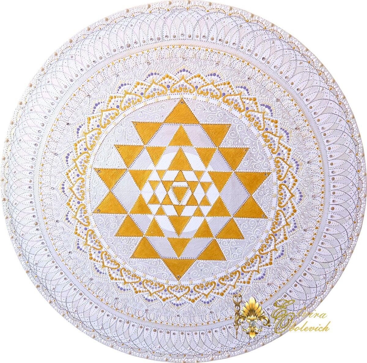 И сейчас хочу передать весь глубокий смысл этого произведения, чтобы познать всю глубину и целостность Вселенской энергии. Шри́-я́нтра — наиболее знаменитая из всех тантрических янтр, космическая диаграмма, имеет глубокий сакральный смысл. Представляет собой магическое устройство космоса. Эта янтра изобретена для того, чтобы дать образ полноты и целостности существования.