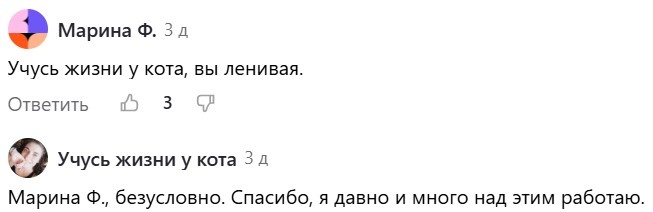 Особенно нравится, когда пишут, что я самовлюблённая, эгоистичная, эгоцентричная, неэмпатичная и т.д. Такие комментарии показывают, что я на правильном пути.🙂