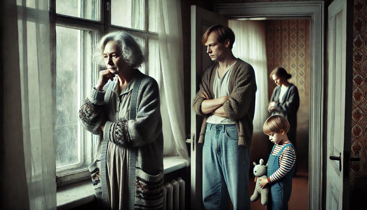 Чашка выскользнула из рук Светланы Георгиевны, ударилась о край стола и упала на пол, рассыпавшись на мелкие осколки. Женя вздрогнул от звука, а Наталья замерла в дверном проёме, прижимая к себе ключи и старую квитанцию за коммуналку. В соседней комнате испуганно выглянул Миша — шестилетний внук, заслышав крики бабушки.