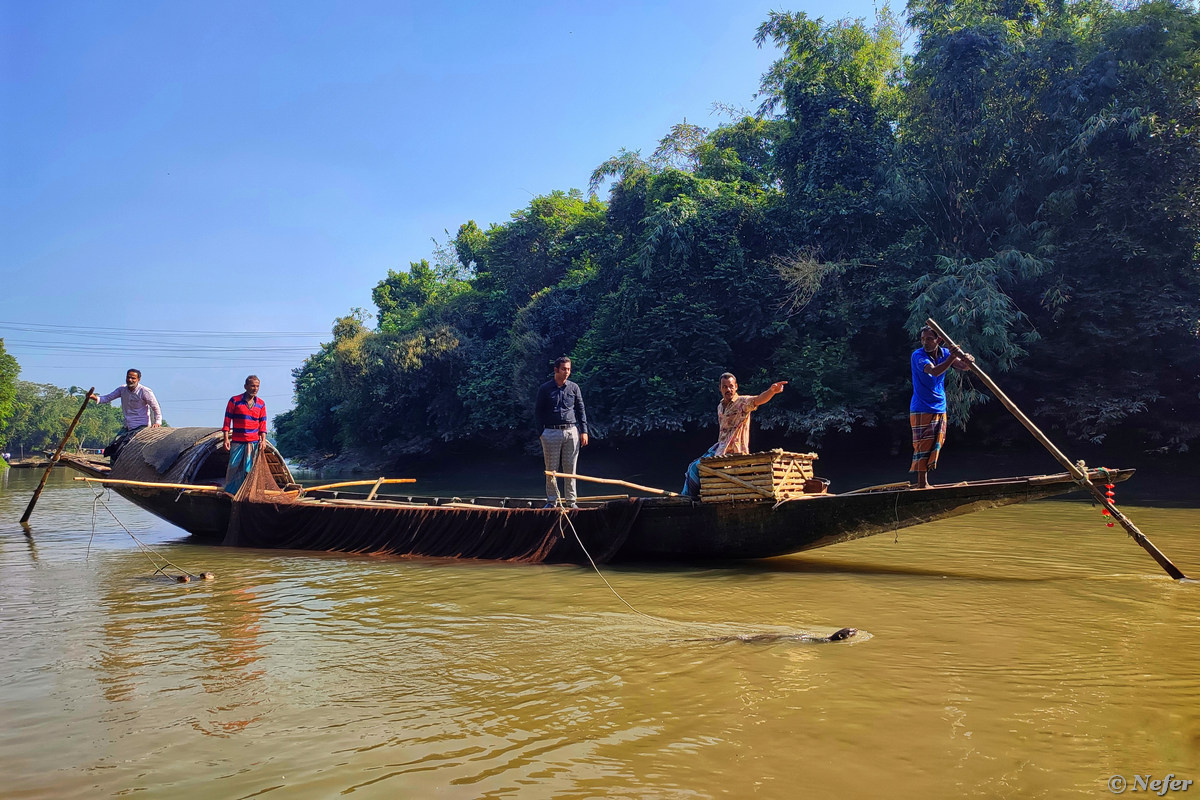 Бангладеш во многом удивительная страна. Например, там практикуется рыбалка с выдрами. Оригинально, не правда ли. Никогда такого не видела. Правда, все происходит не так, как я себе представляла. Я вообразила, что выдры, как собаки, приносят добычу в зубах. Никак не могла придумать, какой резон выдре не есть пойманную рыбу, а нести ее хозяину. На самом деле технология совершенно другая. Выдры на поводках плавают в воде. Потом опускается сеть. Лодка плывет от середины реки к берегу, выдры по сторонам от сети. Рыбе деваться некуда, она попадает в ловушку. Рыбалка с выдрами - не туристический аттракцион, а древняя традиция с какого-то там века. Люди так живут, это способ прокормить семью. Дядечка в европейской одежде работает в отеле, он договорился с рыбаками, чтобы они продемонстрировали нам процесс. Дело было в деревушке недалеко от городка Нараил. Туристов в Бангладеш мало. А в таких глухих местах их практически нет. Местные побросали свои дела и вышли к реке смотреть, что за движ. Пе