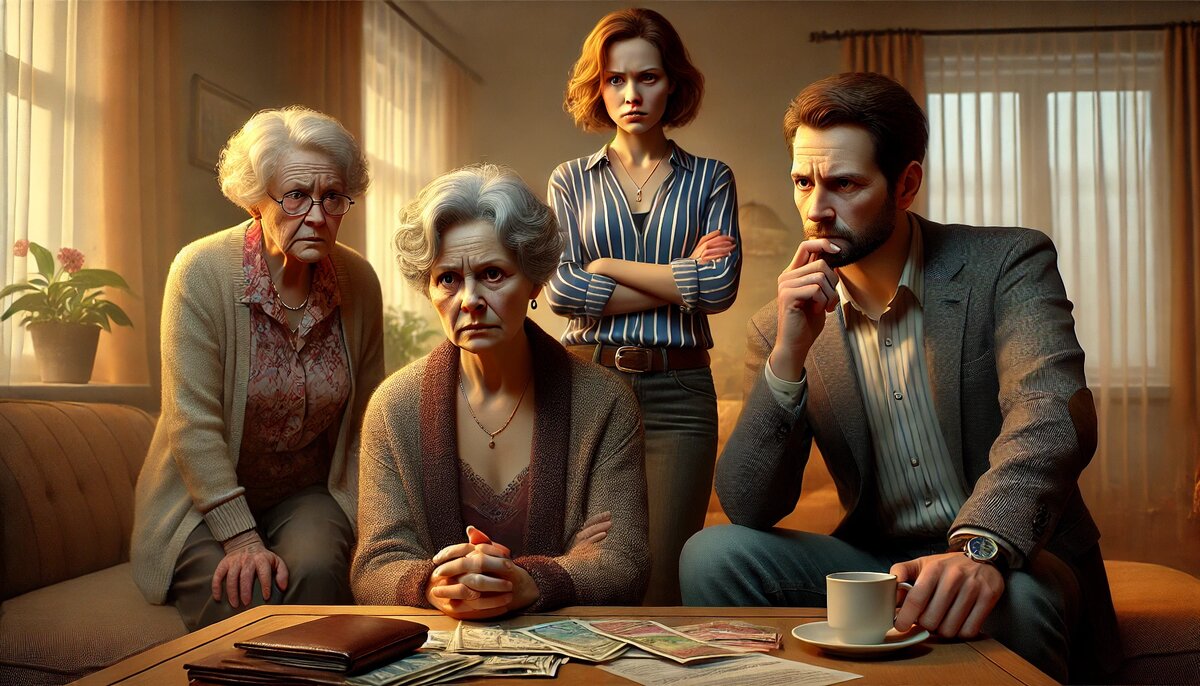 В коридоре повисла тяжёлая тишина. Елена Григорьевна, сжимая старый мобильник, невольно осела на край табурета у стены. Анна, её дочь, стояла напротив, прижимая к себе пухлый клатч с квитанциями и недоплаченными счетами. Максим, зять, в это время выглядывал из-за кухни, словно готовый вмешаться, но не зная как. И именно в этот момент из спальни вышла Галина — двоюродная сестра Елены, держа в руках пакет с продуктами.