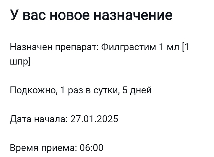 Часть 19 тут.. Сегодня 27 января 2025год. На данный момент сделано 4 химии и 20 лучевых. Что по самочувствию? Если не диарея, то тошнота, если не тошнота, то диарея 🤢🥴 Каждую пятницу я продолжаю сдавать кровь из вены и мой радиотерапевт смотрит анализы. Планировали 5раз химию (Ципластин, его мы капаем по понедельникам), но сегодня утром в ЕМИАС посыпались другие направления. Радиотерапевт решил, что нужно организму отдохнуть эту неделю. Вердикт таков: Убрать химию. Лучевую оставить. Начать колоть Филграстим 5дней и "капать" 3дня "витаминки"... Ну что ж, он врач, ему виднее.. Давайте почитаем, что такое Филграстим🤔🤔🤔 Несмотря на появление генериков (аналоги) стоимость филграстима остается стабильно высокой — 4–5 тыс. рублей (150–200 долларов) за одно введение. 🤦🤦🤦 Хорошо, что это входит в ОМС🤗🙏 Что такое филграстим? Стимулятор лейкопоэза. Филграстим - высокоочищенный негликозилированный белок, состоящий из 175 аминокислот. Он вырабатывается штаммом Escherichia coli, в геном