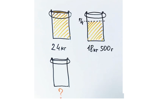 1. Бидон, наполненный мёдом, весит 24 кг, а бидон, наполненный мёдом на 3/4, весит 18 кг 500 г. Сколько весит пустой бидон?