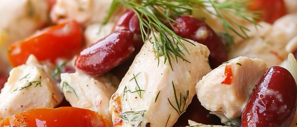 Приготовим быстрый и простой салат с курицей, фасолью и помидорами