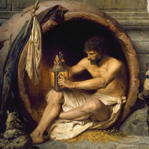 Диоген Синопский, один из самых эксцентричных и дерзких философов античности, родился в городе Синопе на берегу Чёрного моря. Но его жизнь и философия настолько потрясли мир, что он стал известен далеко за пределами родного города. Диоген провёл большую часть жизни в Афинах, где его идеи и образ жизни вызывали восхищение и возмущение одновременно. Основные идеи Диогена можно выразить в нескольких ключевых тезисах: Кинизм как философия жизни. Диоген был одним из основателей кинизма — течения, которое ставило во главу угла простоту, аскетизм и жизнь в гармонии с природой. Киники считали, что настоящее счастье можно найти только в простой жизни, свободной от условностей и общественных предрассудков. Презрение к богатству. Диоген презирал богатство и материальные ценности. Он жил в глиняной бочке, спал на голой земле и носил одну и ту же одежду. Его аскетизм был демонстративным актом протеста против общества, которое поклонялось золоту и серебру. Шутливые анекдоты. Диоген был мастером пар