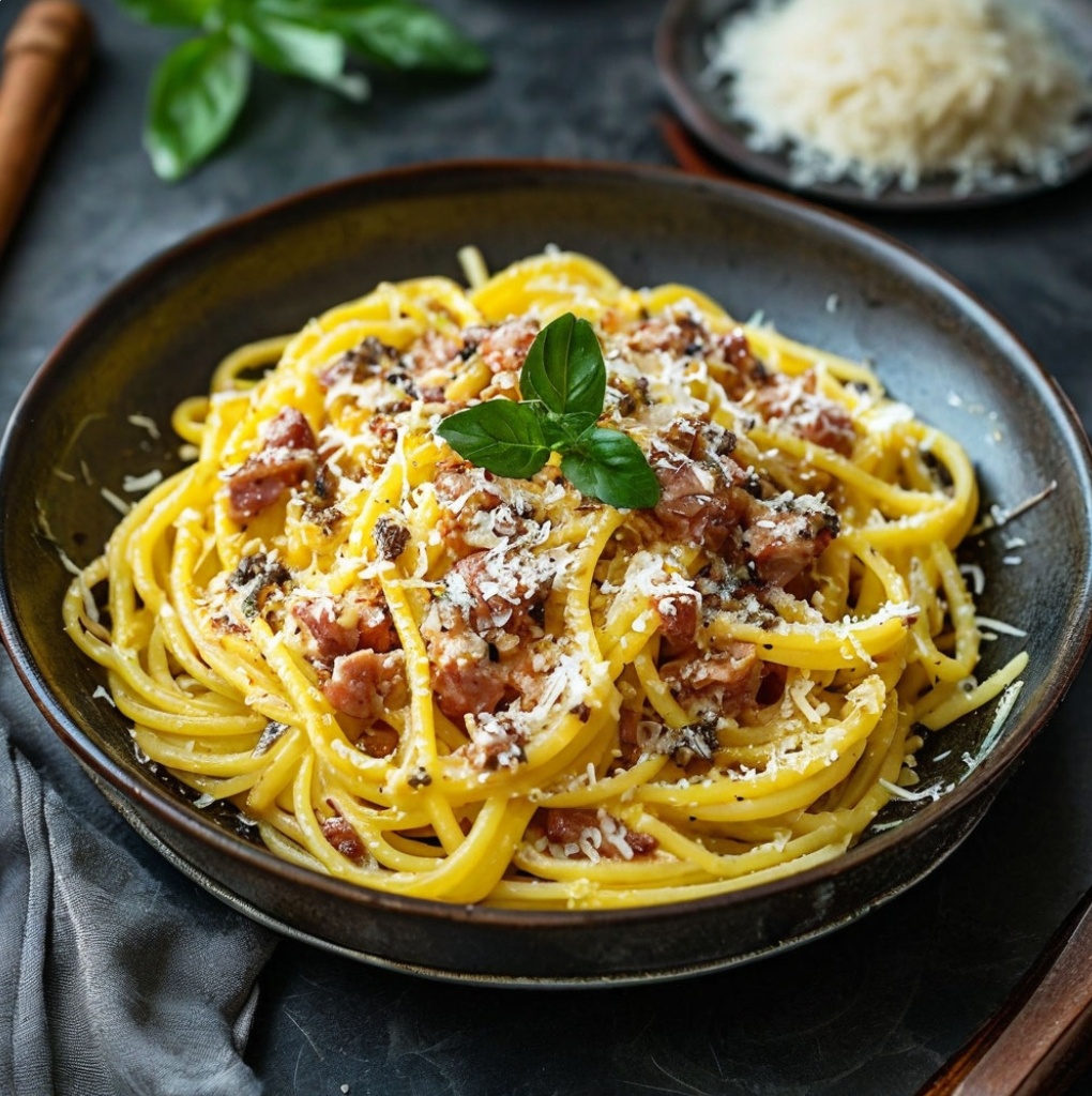 Приготовление: Ингредиенты: Спагетти — 250 г. Бекон — 150 г. *Яйца — 3 шт.*Сливки 20 % — 200 мл. *Сыр пармезан — 100 г.*Чеснок — 2 зубчика. *Петрушка — по вкусу.*Соль, перец — по вкусу. Полезность: Паста «Карбонара» — это не только вкусное, но и питательное блюдо. Спагетти являются источником углеводов, которые дают энергию организму. Бекон богат белком и жирами, которые необходимы для здоровья. Яйца содержат белок, витамины и минералы, которые полезны для организма. Сливки добавляют блюду кремовую текстуру и насыщенный вкус. Сыр пармезан богат кальцием и белком, которые необходимы для костей и мышц. Чеснок добавляет блюду аромат и может оказывать положительное влияние на здоровье. Петрушка придаёт блюду свежий вкус и содержит витамины и минералы. Попробуйте приготовить пасту «Карбонара» и насладитесь её ярким вкусом и ароматом!
