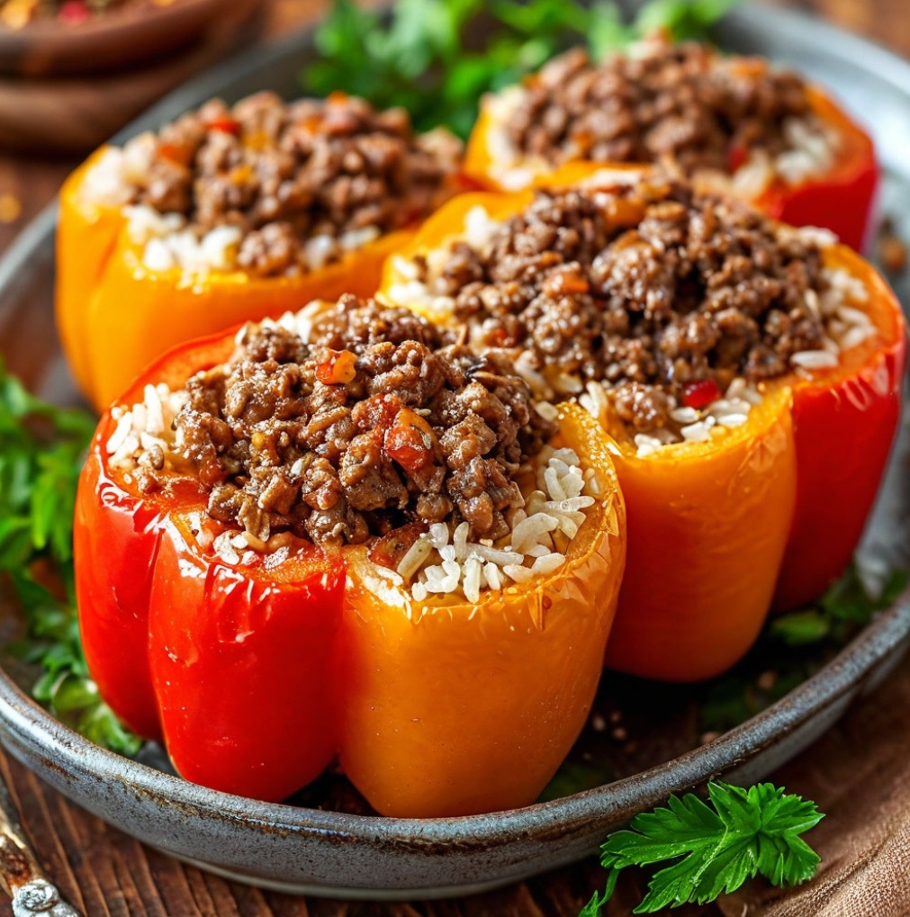 Описание приготовления: фаршированные перцы — это простое и вкусное блюдо, которое подойдёт для семейного обеда или ужина. Для приготовления вам понадобятся доступные ингредиенты, а процесс не займёт много времени. Для начала подготовьте следующие продукты: болгарский перец (8–10 штук), мясной фарш (500 г), рис (100 г), лук (1 штука), морковь (1 штука), помидоры (2 штуки), томатную пасту (2 столовые ложки), сметану (3 столовые ложки), зелень (укроп, петрушка), соль, перец и специи по вкусу. Перцы вымойте, удалите из них сердцевину с семенами. Лук нарежьте кубиками, морковь натрите на крупной тёрке, помидоры нарежьте мелкими кубиками. В сковороде разогрейте немного масла, обжарьте лук и морковь до мягкости. Добавьте мясной фарш и обжаривайте, помешивая, пока он не станет рассыпчатым. Затем добавьте помидоры, томатную пасту, сметану, рис, соль, перец и специи. Перемешайте и тушите на среднем огне под крышкой 15–20 минут. Подготовленные перцы наполните начинкой из фарша и риса. Уложите их